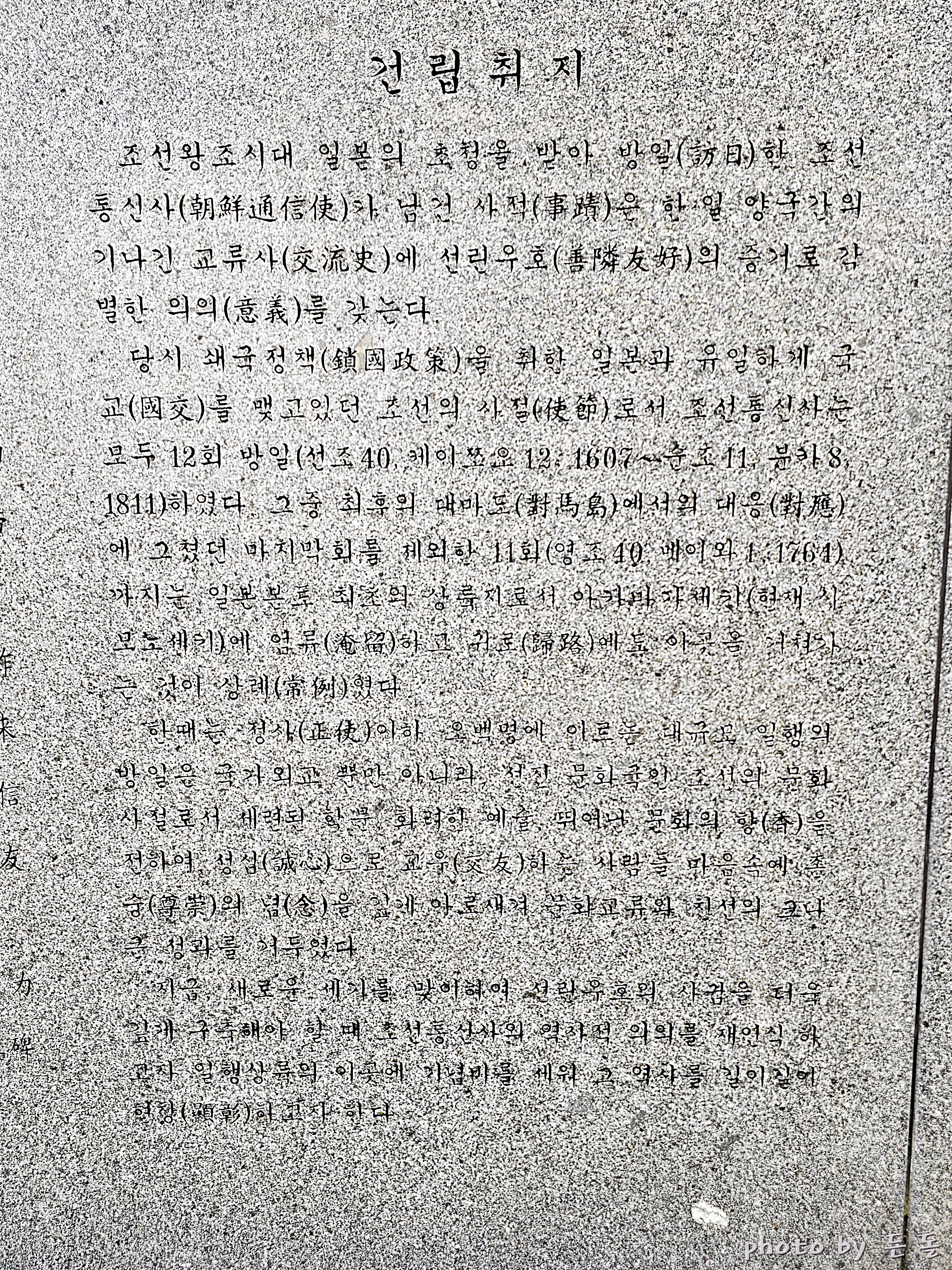 조선시대 당시 쇄국정책을 펼치던 일본과 유일하게 국교를 맺고 있던 조선의 사절이 초청을 받아 총 12회에 걸쳐 일본을 방문 했는데, 마지막을 제외하고 열한 차례 파견된 통신사들이 일본 본토의 이곳에 상륙했다.